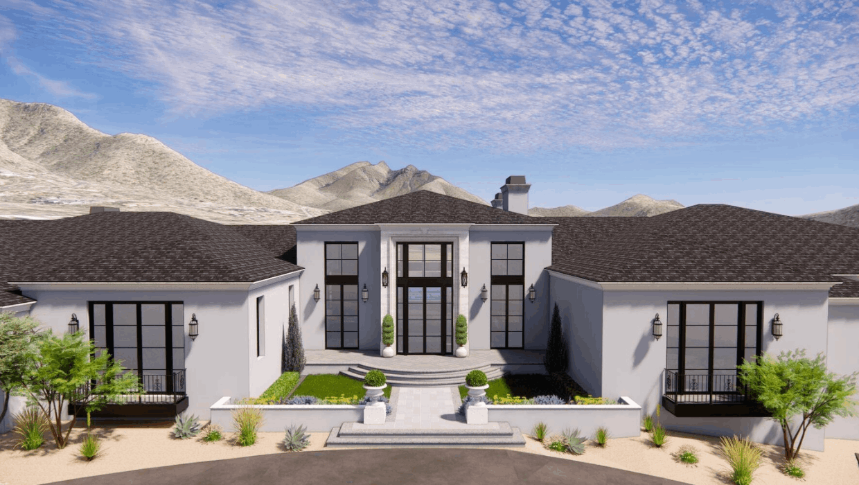 An extraordinary opportunity awaits in Silverleaf Upper Canyon with this brand new luxury estate offering spectacular mountain and city light views in one of North Scottsdale’s most coveted communities. Designed by renowned architect Bing Hu and to be artfully crafted by Sommer Custom Homes, this exceptional residence combines timeless architecture with modern functionality on a pristine 1.45 acre homesite that includes nearly an acre of usable land for expansive outdoor living. The thoughtfully designed floor plan offers 10,581 square feet of livable space with no steps on the main level or backyard areas, creating seamless accessibility and effortless flow. An additional 3,683 square feet in the walkout basement provides remarkable flexibility to tailor the home to your lifestyle. The main level features four or five full bedroom suites, including a library or office that may also serve as a fifth suite. Gracious living spaces include a spacious great room, a chef’s kitchen with two oversized islands and a large walk in pantry, a breakfast nook, formal dining room, wine room, two powder baths, a game and entertainment room, separate media room, golf simulator room, two laundry rooms, a mud room, and elevator access to the lower level. The walkout basement is designed as a truly adaptable space with a full bathroom, three car garage, and interior access via elevator or staircase. It can function as a private guest house complete with its own bedroom, living area, and kitchen. For wellness enthusiasts, the space could transform into a personal retreat with a sauna, cold plunge, steam room, and expansive gym. It also lends itself beautifully to a children’s retreat with dedicated zones for gaming, indoor sports, movie viewing, reading, and recreation. For collectors and entertainers, envision a private lounge with full bar, media area, collectibles display, additional wine storage, cigar room, and simulators. Automotive enthusiasts may even utilize the entire lower level for climate controlled car storage, accommodating a dozen or more vehicles on the floor and potentially twice that number with lifts. Outdoor living is equally impressive. The backyard showcases a stunning 60 by 24 foot pool with a separate hot tub, generous lounge areas, and a substantial 50 by 80 foot lawn ideal for games, a playground, or putting green. An additional 30 by 30 foot lawn area offers even more versatility. Covered patios span most of the rear of the home, creating inviting spaces for dining and entertaining. The largest patio connects to the great room through a dramatic 32 foot wide stacking door system, allowing the indoor and outdoor living areas to become one expansive space when opened.